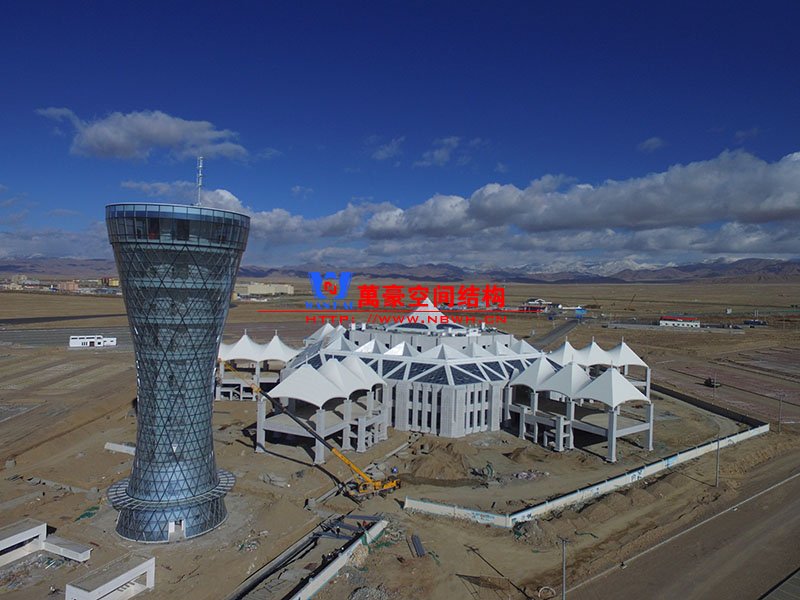 青海茶卡鹽湖天空之境集散中心鋼膜結(jié)構(gòu)項(xiàng)目位于擁有中國(guó)“天空之境”之稱的茶卡鹽湖。該項(xiàng)目分小蠻腰觀光塔和六角主樓兩部分,其中小蠻腰觀光塔由雙曲面空間鋼結(jié)構(gòu)相互交叉形成幾何形的外掛玻璃組成,主樓由雙曲面穹頂及6條連廊組成。鋼結(jié)構(gòu)跨度35米,鋼膜總面積28000平米,鋼結(jié)構(gòu)用鋼量1100噸。建筑內(nèi)部空間明亮通透,遠(yuǎn)觀猶如大漠孤煙中的鹽湖之晶,近觀仿佛置身于鹽湖中的浪漫滿屋。