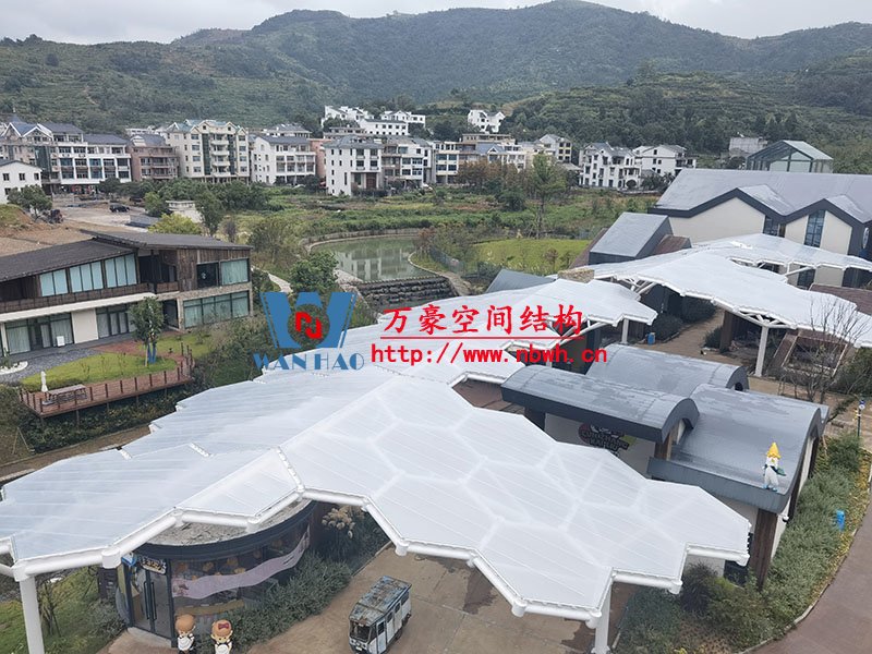 樂(lè)清鐵定溜溜樂(lè)園膜結(jié)構(gòu)工程位于浙江省溫州市樂(lè)清市,項(xiàng)目鋼膜結(jié)構(gòu)雨棚包括6號(hào)商業(yè)街蜂窩狀ETFE膜結(jié)構(gòu)、檢票口PTFE膜結(jié)構(gòu)、售票口PVDF膜結(jié)構(gòu)。