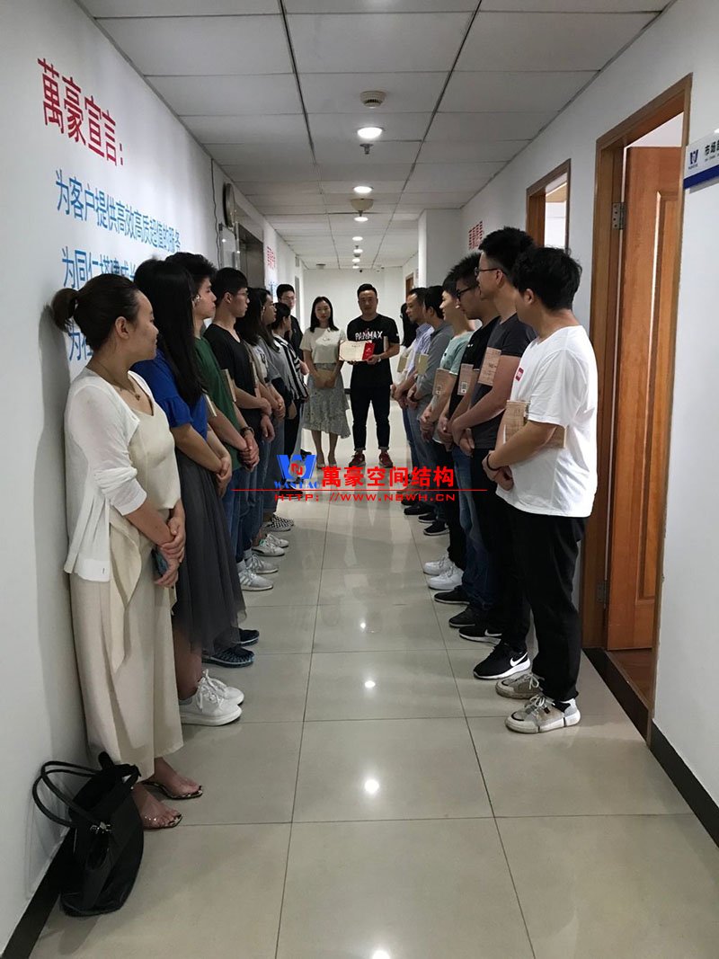 12日晨會,在主持人分享完晨會文章心得后,萬豪總經(jīng)辦主任給我們的余姚財政局膜結構車棚項目經(jīng)理任經(jīng)理進行了頒獎,獎勵內(nèi)容包括榮譽證書和現(xiàn)金獎勵。