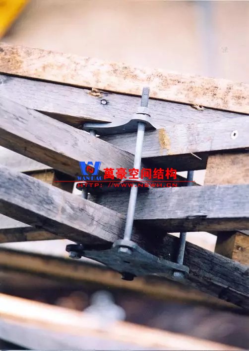 工程師設(shè)計(jì)了一種用金屬絲綁扎的方式。這種連接方式使構(gòu)件都能貫通,大大簡(jiǎn)化節(jié)點(diǎn)構(gòu)造、節(jié)省了組裝成本。