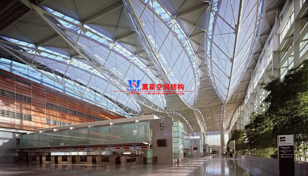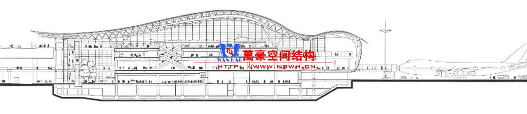 關(guān)西機(jī)場(chǎng)建筑設(shè)計(jì)概念上追求連續(xù)的空間感受。建筑建筑上呈現(xiàn)流動(dòng)的形態(tài)。結(jié)構(gòu)上采用了82.8米超大跨度的空間桁架。