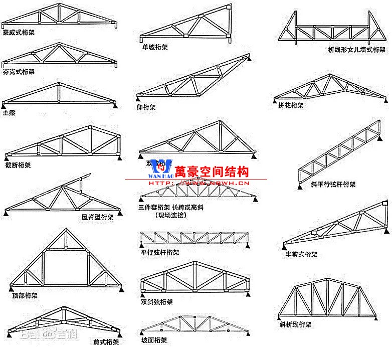 早期的桁架都是以平面形式出現(xiàn),工程師一般通過(guò)布置水平支撐的方式,解決其平面外的穩(wěn)定問(wèn)題。而后出現(xiàn)的空間桁架,構(gòu)件則在三個(gè)維方向布置,其橫斷面常為三角形或矩形等,大大提高了桁架的整體穩(wěn)定性,適用于現(xiàn)代大跨度空間結(jié)構(gòu)。