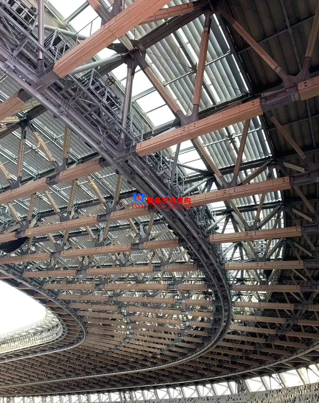 場(chǎng)館設(shè)計(jì)延續(xù)了隈研吾崇尚自然的建筑理念,建成了與周邊環(huán)境融為一體的“森林體育場(chǎng)”。采用了許多日本傳統(tǒng)建筑技術(shù)和當(dāng)?shù)啬静?,并通過鋼木結(jié)構(gòu)的屋頂,演繹出傳統(tǒng)日式風(fēng)格。