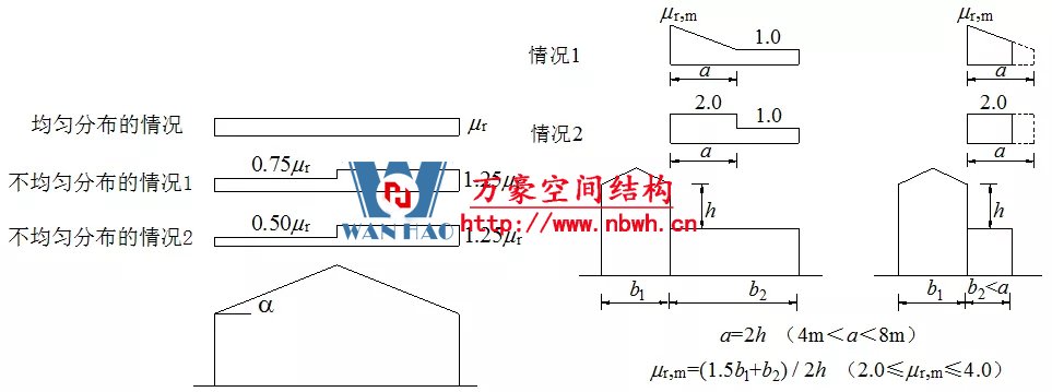 標(biāo)準(zhǔn)還細(xì)化了單跨雙坡屋面和與較高建筑相接的低屋面的積雪分布系數(shù)。