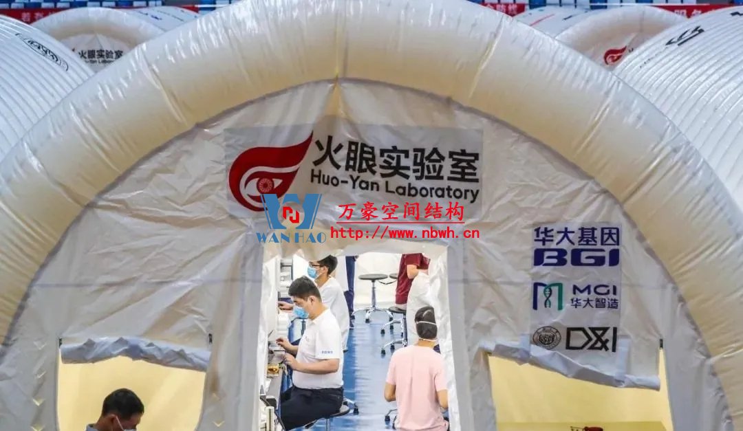 三天前,這里還是塊籃球場(chǎng)。相比較傳統(tǒng)實(shí)驗(yàn)室,氣膜式膜結(jié)構(gòu)實(shí)驗(yàn)室的搭建速度快很多,為一個(gè)氣膜倉充滿氣,只需要50分鐘,“倉內(nèi)采用模塊化布局,設(shè)備到了直接組裝即可,而且還為后續(xù)發(fā)展預(yù)留了空間,實(shí)現(xiàn)定制化升級(jí)。”現(xiàn)場(chǎng)負(fù)責(zé)人說,待疫情消散,三組氣膜實(shí)驗(yàn)室能夠在半天時(shí)間內(nèi)撤出,快速恢復(fù)場(chǎng)地原貌。