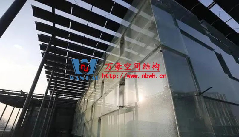 作為2008年北京奧運(yùn)會場館,國家體育館外觀盡可能地保持原有風(fēng)貌。擴(kuò)建部分的外立面也延續(xù)了主館與副館的設(shè)計元素,無論是從屋頂造型、立面選材還是空間尺度的劃分,都與原有建筑保持一致。同時,為充分體現(xiàn)冬奧會的冰雪元素,新建訓(xùn)練館的外立面設(shè)計上,采用了凸顯冬奧元素的“冰堡”造型玻璃幕墻設(shè)計,使用了一面光滑、一面具有凹凸質(zhì)感的冰花圖案的壓花玻璃,共計863塊。最大的超過8平方米,采用錯落有致的排列方式,配合燈光,能逼真地呈現(xiàn)出由一塊塊晶瑩剔透的冰壘砌出“冰堡”的效果,營造出濃濃的冬季運(yùn)動氛圍。