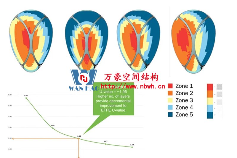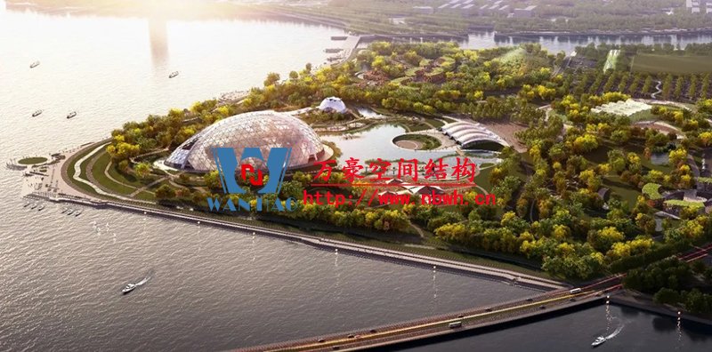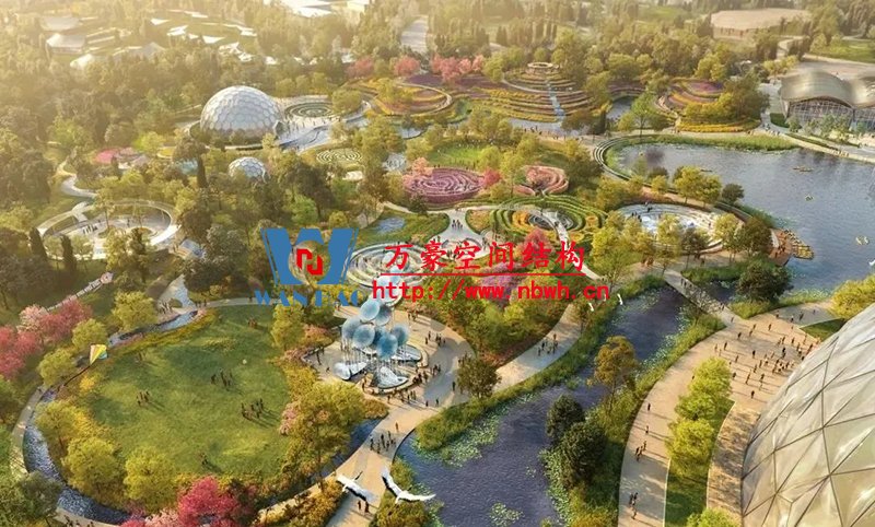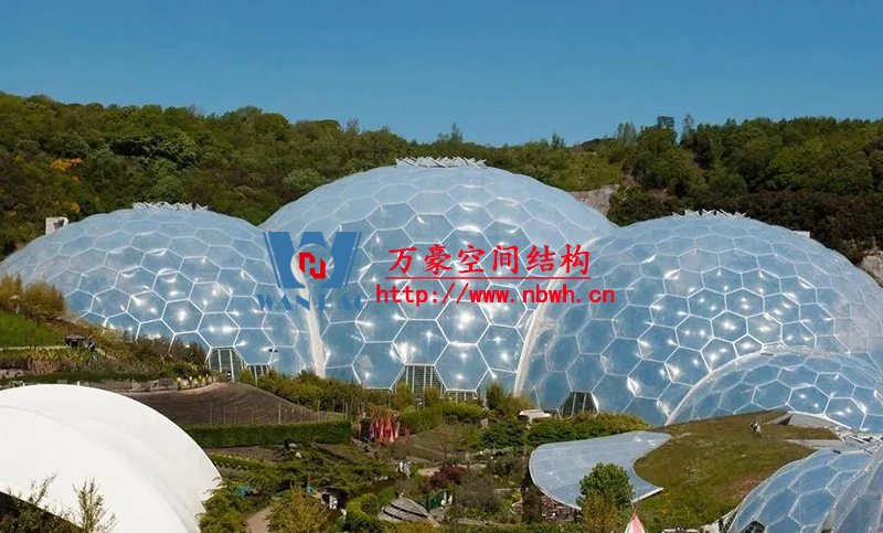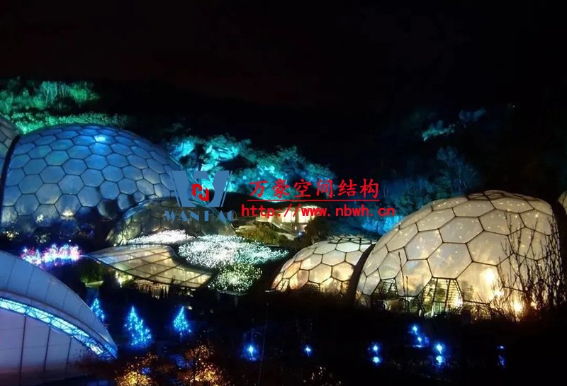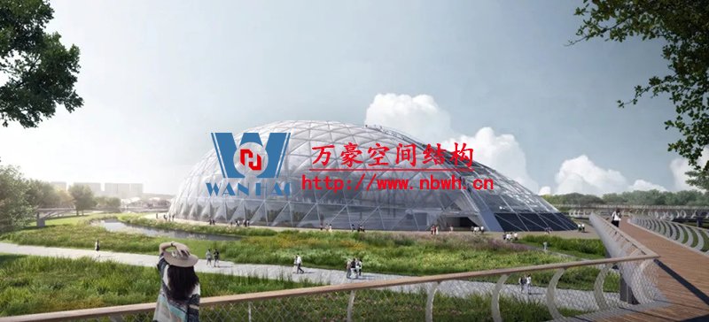 為了滿足室內(nèi)植物的采光條件,該館穹頂全部采用輕盈的ETFE膜覆蓋,“三膜兩腔”的膜結(jié)構(gòu)充氣后就像一個(gè)巨大的泡泡,通過充氣量的多少來調(diào)節(jié)室內(nèi)溫度,從而營造一個(gè)節(jié)能、環(huán)保、可持續(xù)的熱帶植物 “成長樂園”。