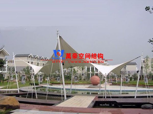 2、膜結(jié)構(gòu)遮陽棚耐候性、耐紫外線性及耐濕性強;