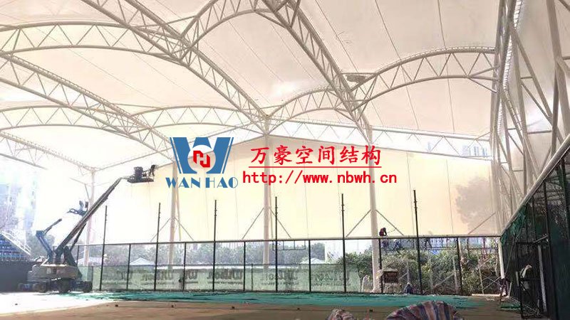 寧波(鄞州)網(wǎng)球中心遮陽棚膜結(jié)構(gòu)工程二期項目,位于寧波市鄞州區(qū)首南街道文華路199號【寧波(鄞州)網(wǎng)球中心內(nèi)】,整個工程用鋼量220噸,膜結(jié)構(gòu)球場展開面積約6000平方米,由寧波萬豪空間結(jié)構(gòu)工程有限公司承建。