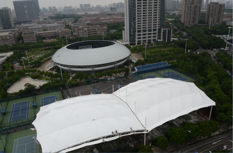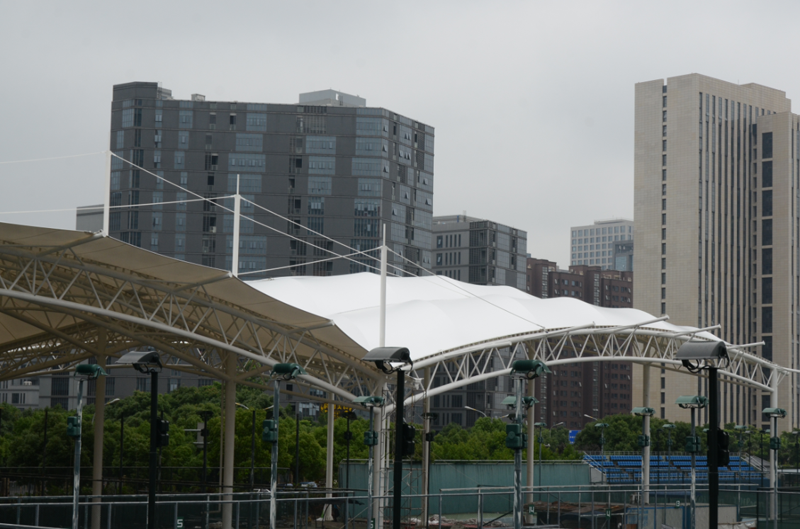 鄞州網(wǎng)球場膜結構工程位于寧波市鄞州區(qū)首南街道文華路199號【寧波(鄞州)網(wǎng)球中心內(nèi)】,膜結構球場展開面積約3700平方米。項目為單片網(wǎng)球場罩篷。采用骨架式結構體系,集休閑、運動、標志性建筑于一體。鋼結構采用Q235B高頻焊管,膜材采用進口建筑膜材,顏色為白色。