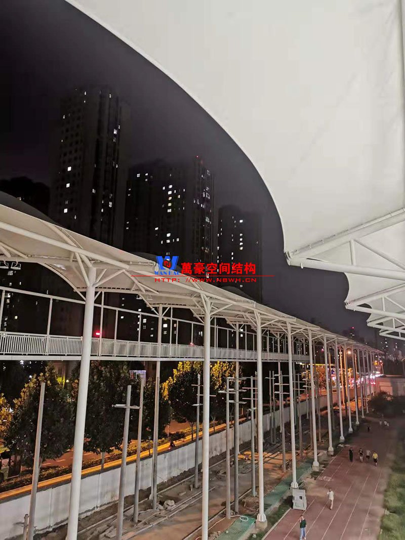 河南電網(wǎng)培訓(xùn)中心膜結(jié)構(gòu)晴雨棚夜景