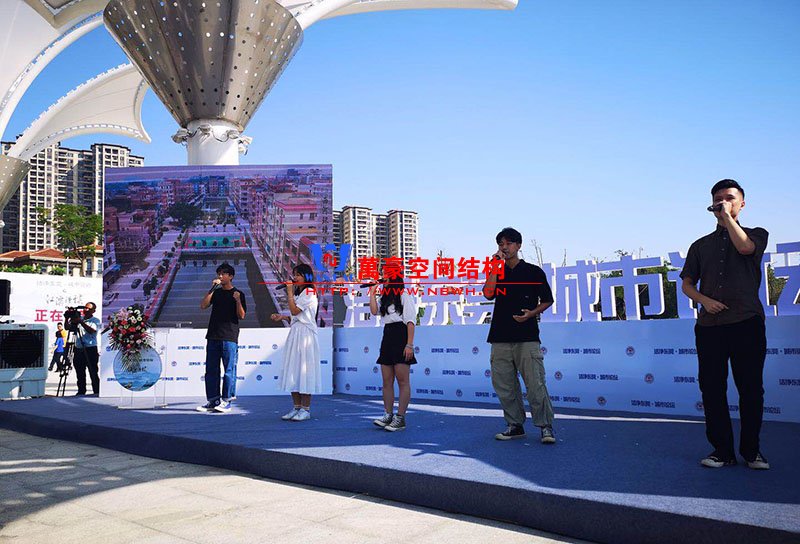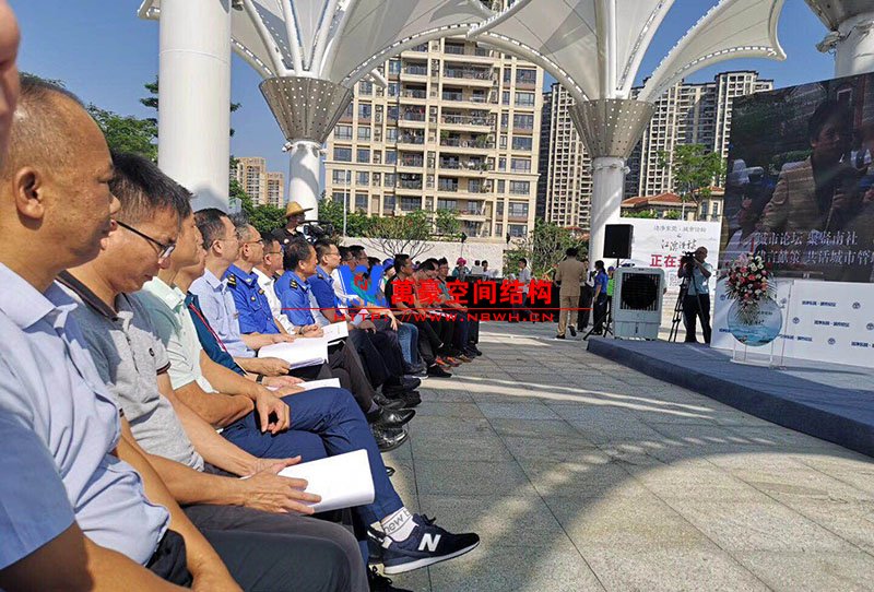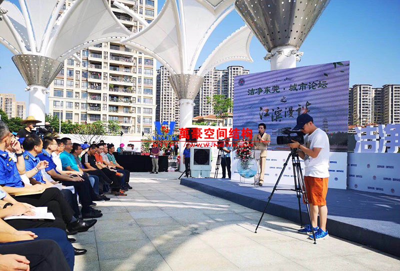 東莞龍舟廣場網(wǎng)格覆膜景觀膜結(jié)構(gòu)竣工半年,本次迎來東莞論壇在景觀膜朦朧照影下召開會(huì)議。 膜的效果非常好,看上去整潔漂亮,祝賀我司又添作品。