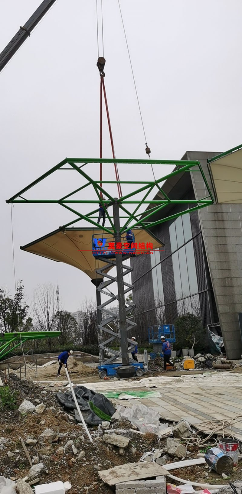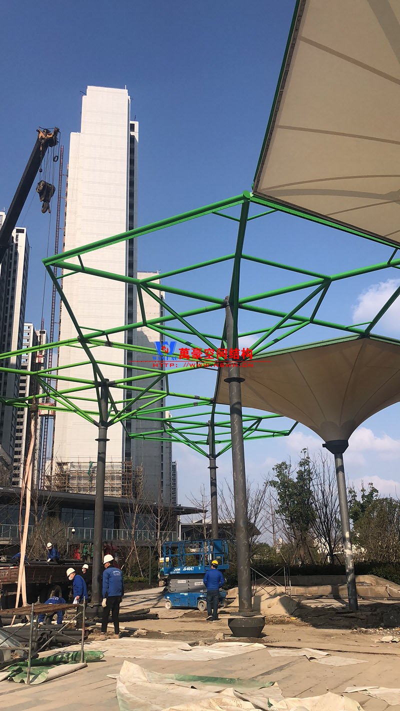 該項(xiàng)目膜材使用進(jìn)口PTFE膜材,膜結(jié)構(gòu)展開面積5000平米,用鋼量100噸,由寧波萬豪空間結(jié)構(gòu)工程有限公司承建。