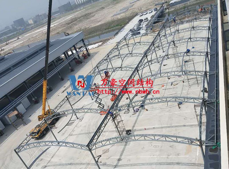 奉化方橋農(nóng)副鋼結(jié)構(gòu)雨棚工程位于浙江省寧波市奉化市內(nèi),此工程用鋼量100噸,膜結(jié)構(gòu)展開面積3500平米,由寧波萬(wàn)豪空間結(jié)構(gòu)工程有限公司承建。