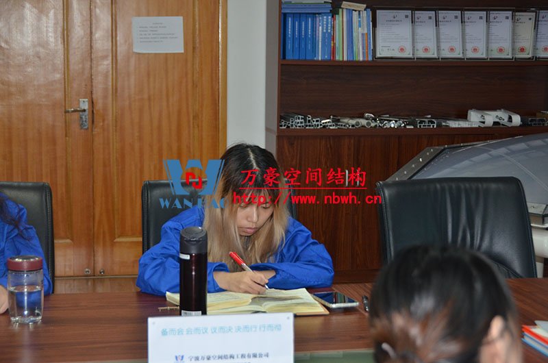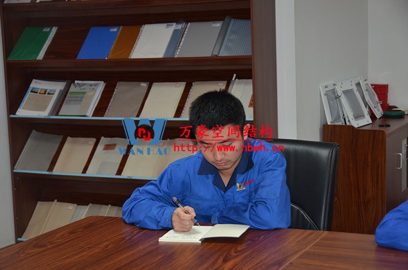 然后,我們的銷售主管教員工們學(xué)習(xí)了膜材料分類、膜結(jié)構(gòu)優(yōu)勢及應(yīng)用領(lǐng)域、膜結(jié)構(gòu)產(chǎn)品結(jié)構(gòu)形式等。
