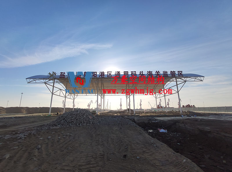 射陽(yáng)港港區(qū)國(guó)家一類開(kāi)放口岸一關(guān)兩檢查驗(yàn)設(shè)施項(xiàng)目位于江蘇省鹽城市射陽(yáng)縣臨港工業(yè)園區(qū),用鋼量150噸,膜結(jié)構(gòu)展開(kāi)面積3000平米,由寧波萬(wàn)豪空間結(jié)構(gòu)工程有限公司承建。