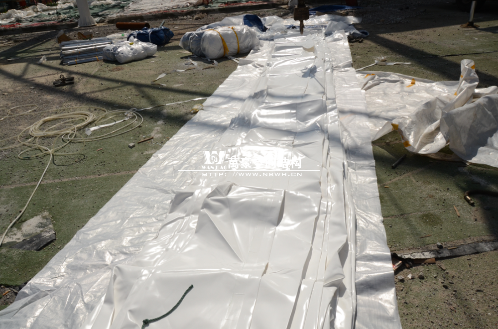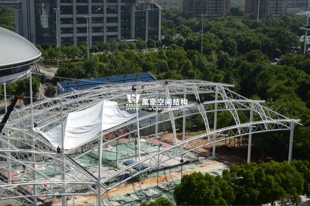 鄞州網(wǎng)球中心膜結構遮陽棚工程鋼結構已完成并經(jīng)初步驗收