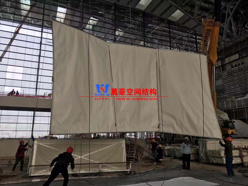青島國際會議中心幕墻膜結(jié)構(gòu)進入內(nèi)膜安裝階段