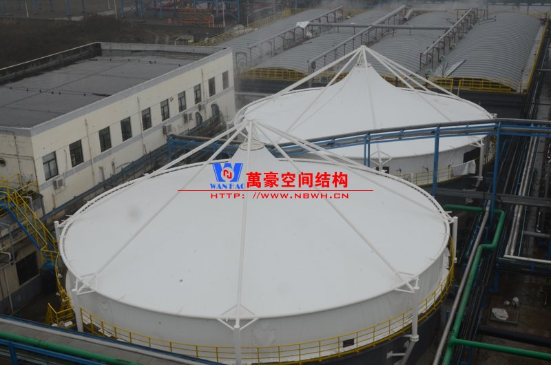 平湖衛(wèi)星石化污水廠膜結(jié)構(gòu)加蓋密封系統(tǒng)工程項(xiàng)目膜結(jié)構(gòu)展開(kāi)面積2000平米,用鋼量35噸,由寧波萬(wàn)豪空間結(jié)構(gòu)工程有限公司承建。