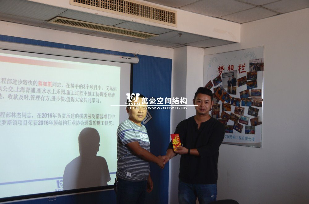 2017年7月,在工程部經(jīng)理的組織帶領(lǐng)下,公司工程部成功舉辦年中總結(jié)計劃會議,工程部經(jīng)理對上半年的工作做了總結(jié),也提出了下半年的工作計劃,得到張總的認(rèn)可,會議最后著重表揚了工程部蔡如凱同志和林杰同志。