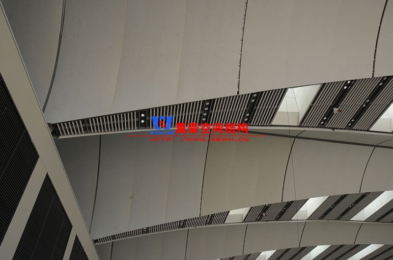 青島紅島國際會議中心幕墻膜結構工程,由寧波萬豪空間結構工程有限公司承建,現(xiàn)場測量、深化設計、制作及安裝由寧波萬豪全權負責。該工程用鋼量1000多噸,PTFE室內(nèi)屋面膜結構展開面積17000多平方米,PTFE室外屋面膜結構展開面積20000多平方米。