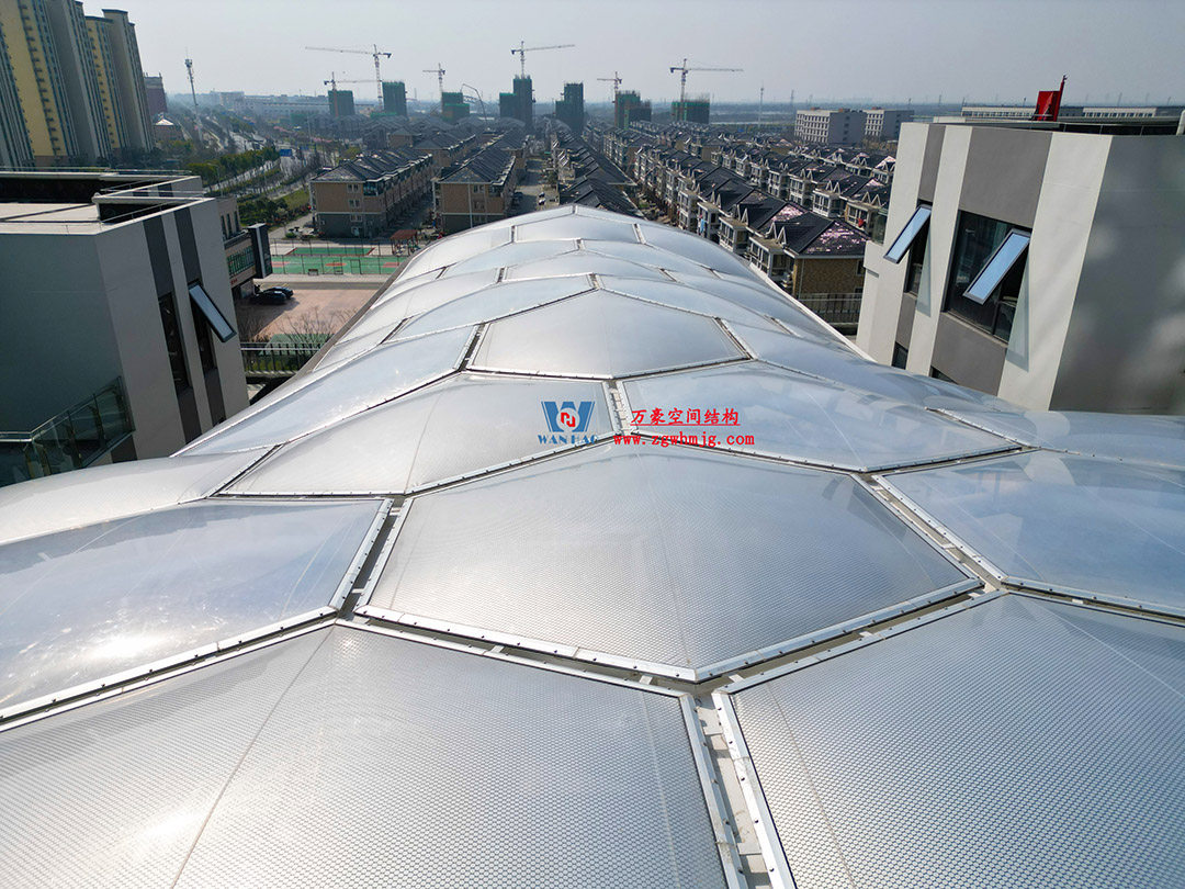 嘉興長(zhǎng)安里ETFE氣枕鋼膜結(jié)構(gòu)頂棚工程位于嘉興市長(zhǎng)安里街區(qū),該項(xiàng)目總用鋼量約440噸,ETFE膜結(jié)構(gòu)展開(kāi)面積約3200平米。