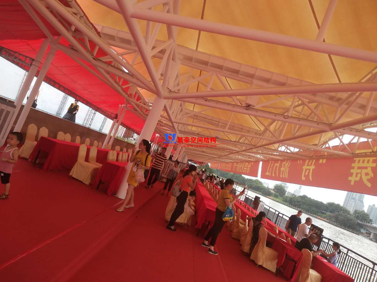 東莞東江西岸景觀膜結(jié)構(gòu)工程位于廣東省東莞市,該項(xiàng)目是當(dāng)?shù)卣蛟斓闹攸c(diǎn)工程,由寧波萬豪空間結(jié)構(gòu)工程有限公司承建。