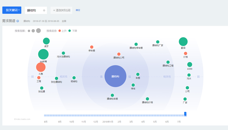 其次,從需求圖譜分析,我們可以發(fā)現(xiàn)中國膜結(jié)構(gòu)網(wǎng)內(nèi)呈上升趨勢的幾個詞,分別是膜結(jié)構(gòu)公司、停車棚、工程、價格,這組數(shù)據(jù)代表著客戶做膜結(jié)構(gòu)工程時著重關(guān)注的幾個要點(diǎn)。我們不難發(fā)現(xiàn),當(dāng)季熱門的膜結(jié)構(gòu)建筑為車棚類工程,在選擇公司的同時,價格也是一個參考點(diǎn),在這里,萬豪友情提醒大家一下,一分價錢一分貨,別一味追求廉價而忽略質(zhì)量,找到性價比最高的才是最劃算的。