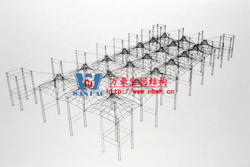 ①支撐大跨度屋頂?shù)碾p向方形網(wǎng)格蜂窩結(jié)構(gòu)的空間場地;