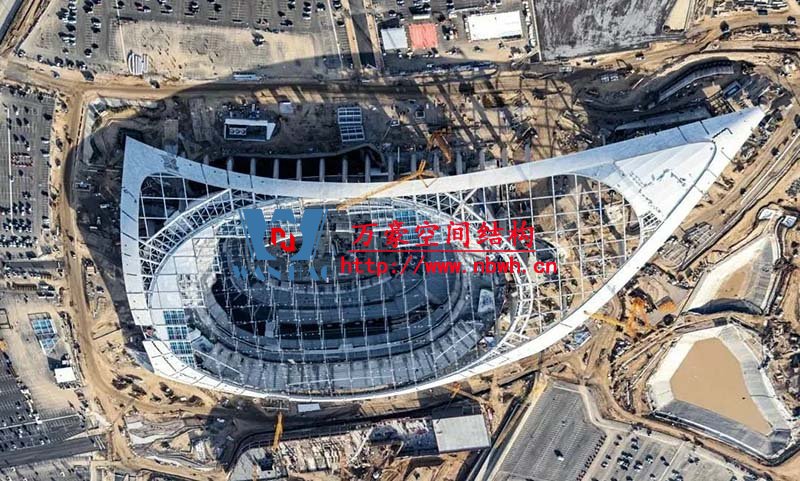 新球場名叫SoFi體育場,是Social和Finance頭兩個字母的組合。球場和周邊設(shè)施總占地120萬平米,總耗資超過350億元。設(shè)有70240個座位, 總共能容納超過10萬人。建成后將成為NFL最大的體育場。