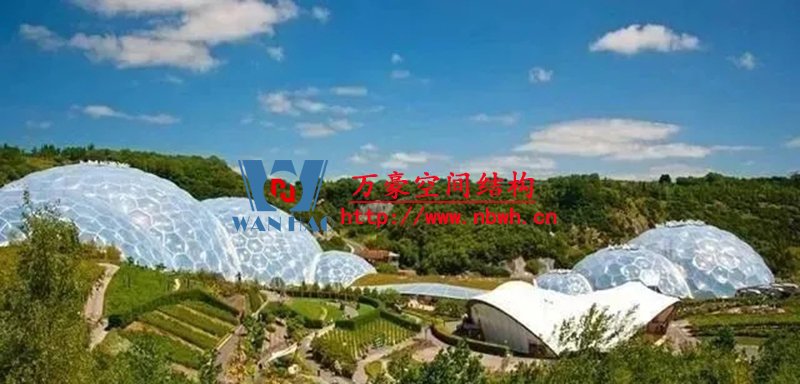 為了滿足室內(nèi)植物的采光條件,該館穹頂全部采用輕盈的ETFE膜覆蓋,“三膜兩腔”的膜結(jié)構(gòu)充氣后就像一個(gè)巨大的泡泡,通過充氣量的多少來調(diào)節(jié)室內(nèi)溫度,從而營造一個(gè)節(jié)能、環(huán)保、可持續(xù)的熱帶植物 “成長樂園”。