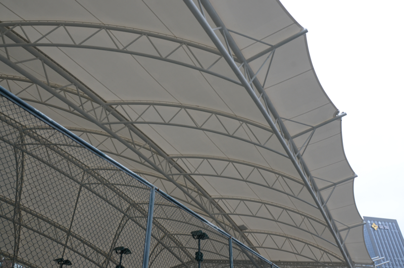 鄞州網(wǎng)球場膜結構工程位于寧波市鄞州區(qū)首南街道文華路199號【寧波(鄞州)網(wǎng)球中心內(nèi)】,膜結構球場展開面積約3700平方米。項目為單片網(wǎng)球場罩篷。采用骨架式結構體系,集休閑、運動、標志性建筑于一體。鋼結構采用Q235B高頻焊管,膜材采用進口建筑膜材,顏色為白色。