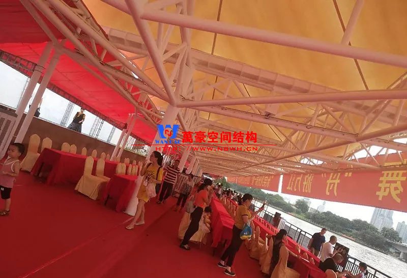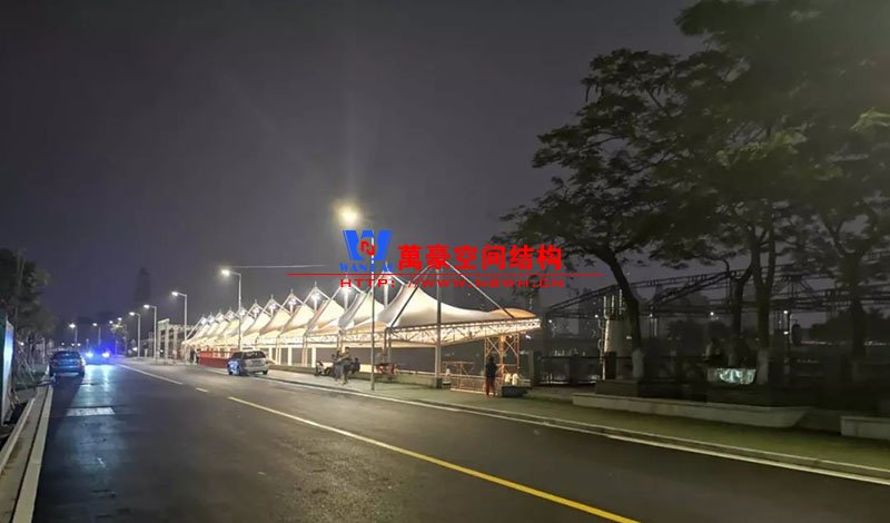 東莞東江西岸景觀膜結(jié)構(gòu)工程位于廣東省東莞市,該項目是當(dāng)?shù)卣蛟斓闹攸c(diǎn)工程,是為了宣揚(yáng)中華傳統(tǒng)文化龍舟節(jié)專門打造的,由寧波萬豪空間結(jié)構(gòu)工程有限公司中標(biāo)承建。