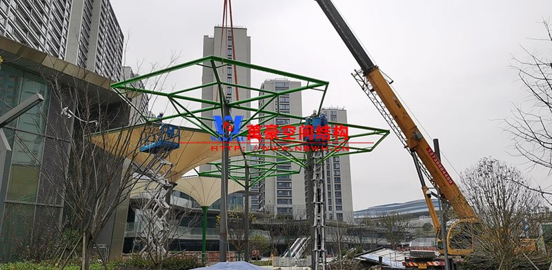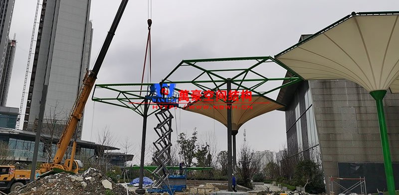 該項(xiàng)目膜材使用進(jìn)口PTFE膜材,膜結(jié)構(gòu)展開面積5000平米,用鋼量100噸,由寧波萬豪空間結(jié)構(gòu)工程有限公司承建。