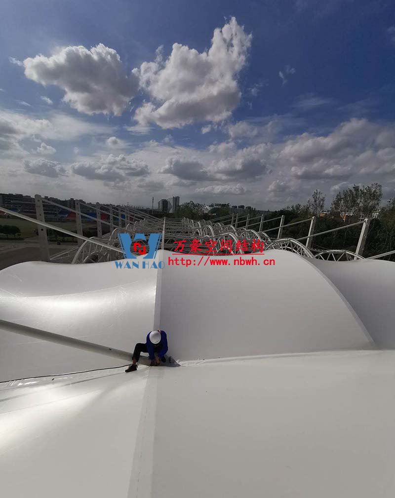 浙江紡織服裝職業(yè)技術學院東西校區(qū)運動場膜結構項目位于浙江省寧波市,膜結構展開面積6000平米,由寧波萬豪空間結構工程有限公司承建。 目前鋼結構安裝完成,膜結構正在安裝中。 期待整個工程的完工,來領略它別致的風采。