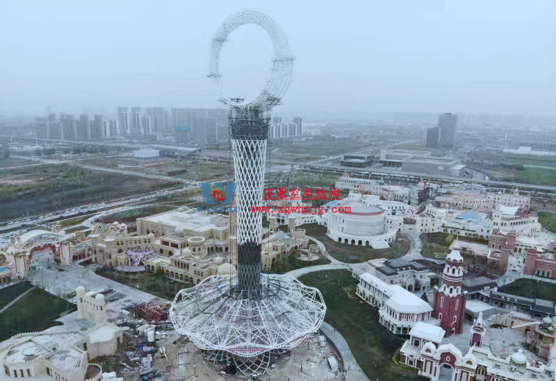 近日,作為絲路歡樂世界的地標建筑,I TOWER的裙擺部件已經(jīng)提拉安裝完畢,遠處望去,整個工程主體效果已基本顯現(xiàn)!