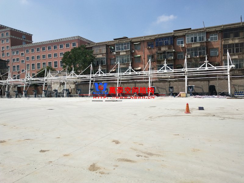 安陽(yáng)市北廠街、彰德路公交充電樁雨棚膜結(jié)構(gòu)接近尾聲