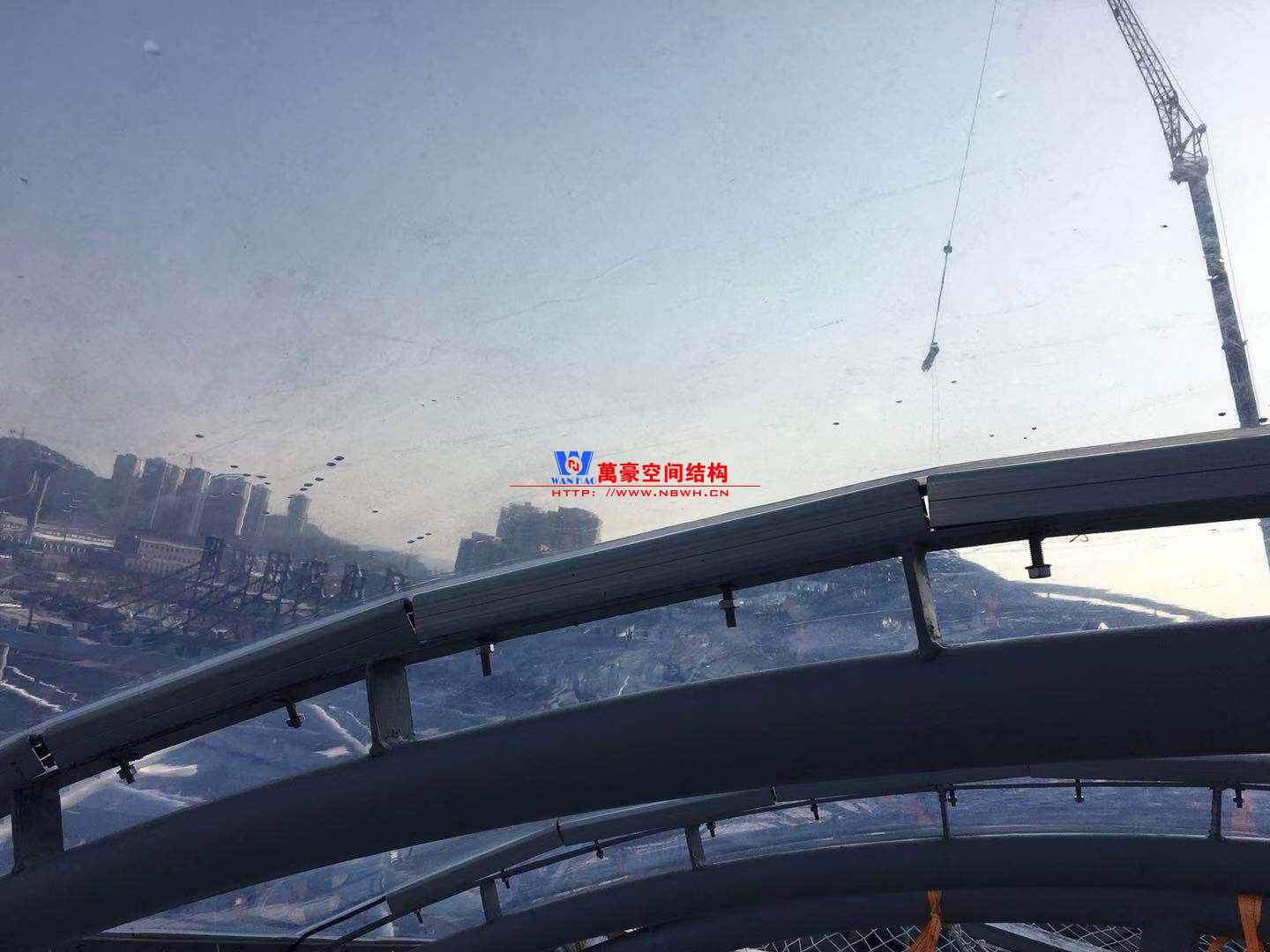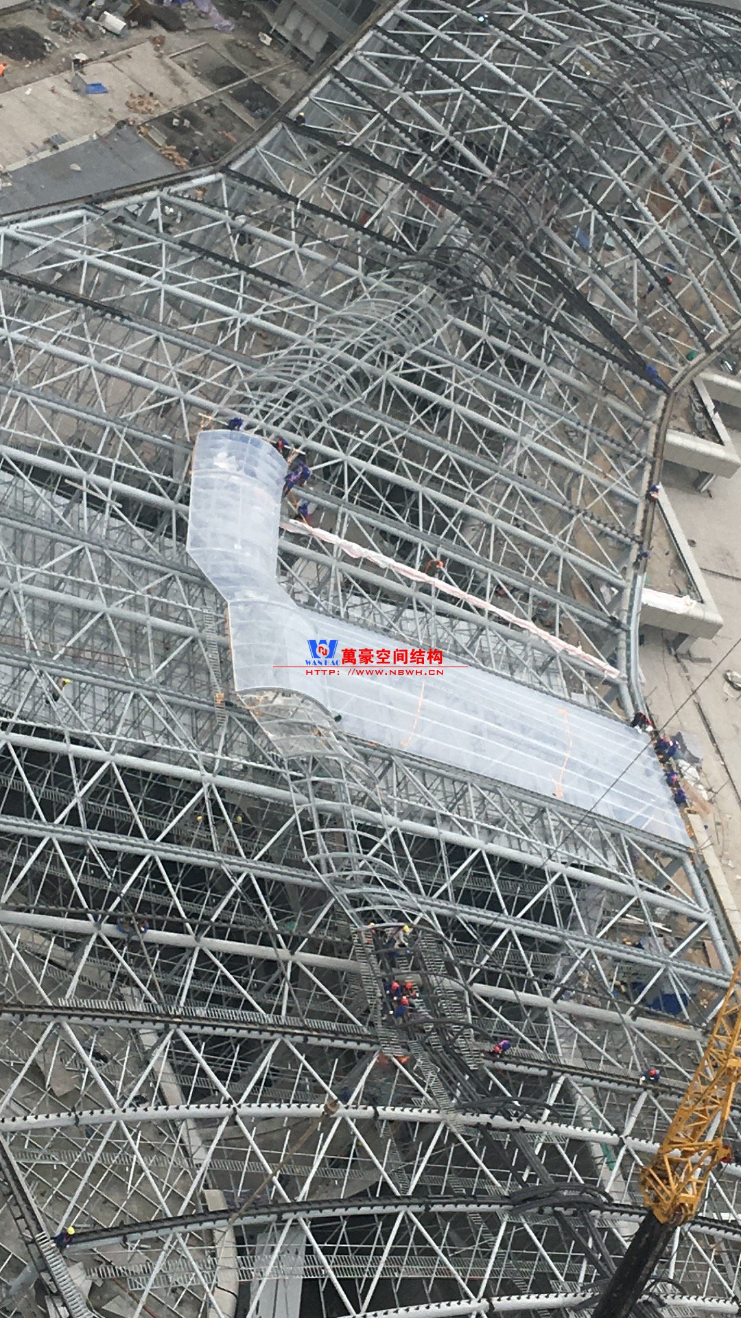 經(jīng)過不斷的日夜加班,遵義高鐵新城天幕膜結(jié)構(gòu)工程目前進入到膜材安裝階段。